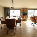 Uplandparcs Bergblick Apartment is furnished with a sofa featuring modern facilities like a cable satellite TV. The accommodation has a private bathroom equipped with a bath and a shower.